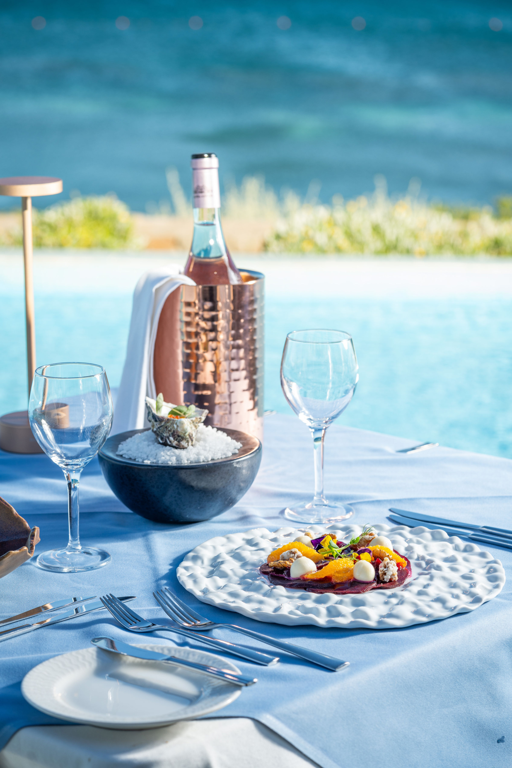 Welcome to our seafront gourmet restaurant Thalassa, ‘Θάλασσα’ (Thalassa) in Greek means ‘Sea’. In Greek Mythology, ‘Thalassa’ was the daughter of ‘Gaea’ Earth and sister of ‘Ouranos’ Sky. She was the gaiety of the salty water and considered its protector. The restaurant focuses on cooking fresh seafood to be enjoyed overlooking the Aegean Sea (Thalassa).